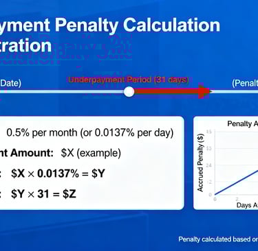 The penalty compounds throughout the missed quarter, making early payment significantly more cost-effective than late payment.